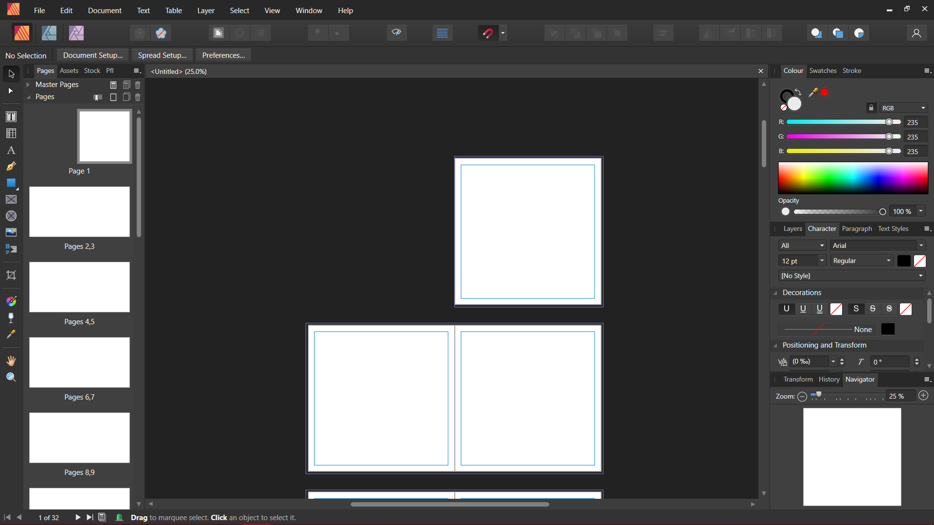 By ticking “Facing pages” and selecting a horizontal arrangement, the books pages will be placed side by side, allowing you to get a good idea of what the book will look like.